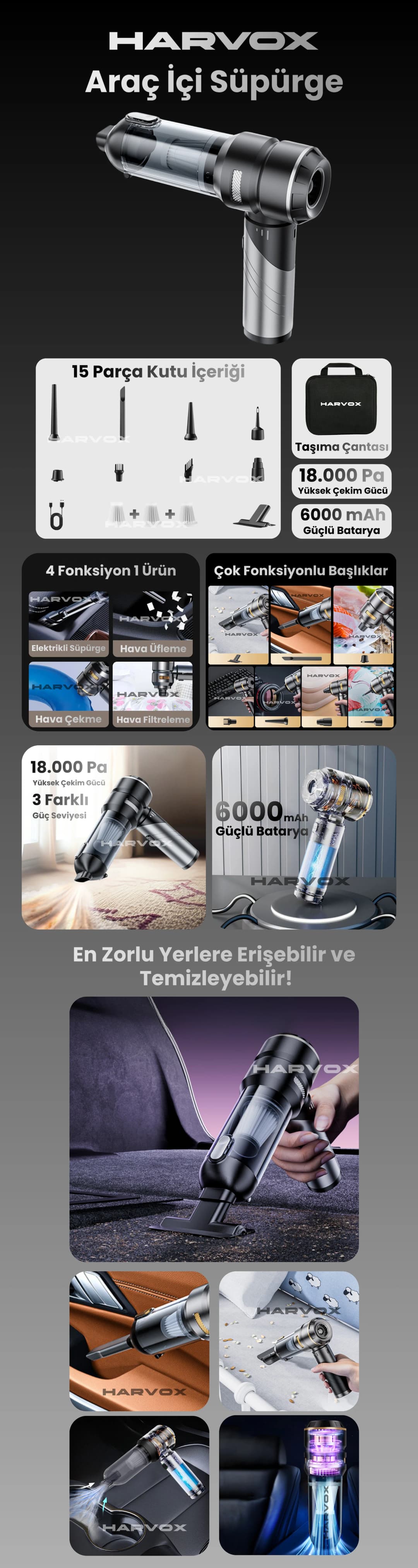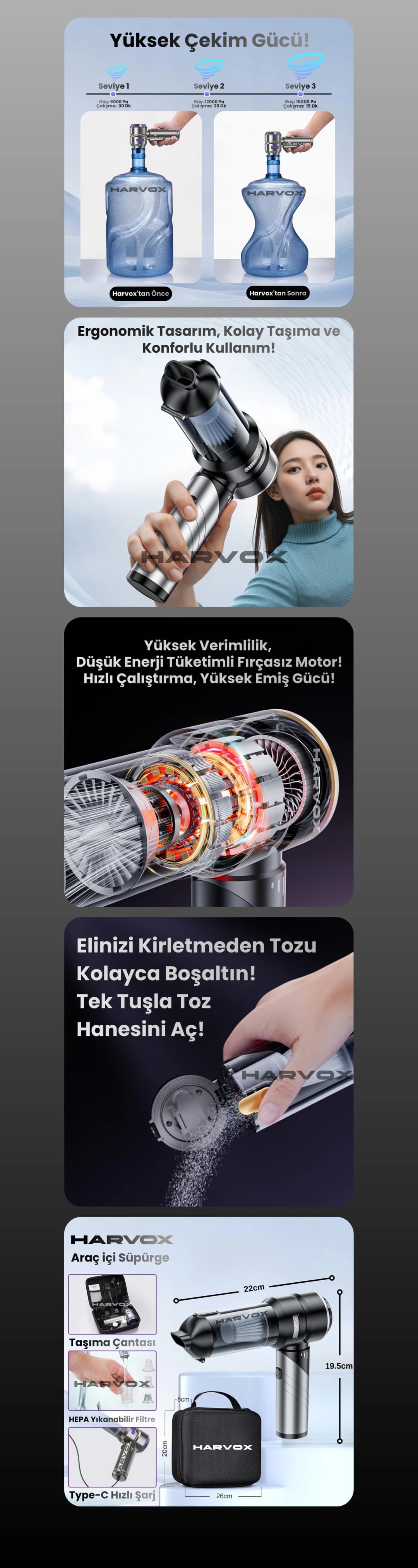 Harvox Araç İçi Süpürgesi HXVC-002 (Gri - Siyah)