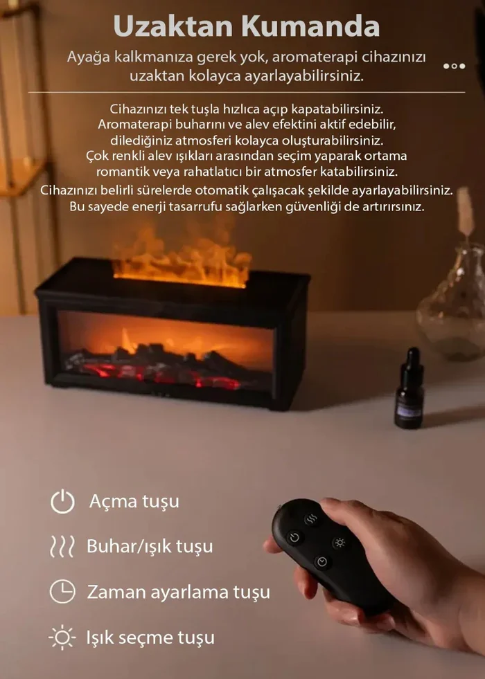 👉 Kısacası: Şömine sıcaklığını, yumuşak ışık efektlerini ve aromaterapi rahatlığını tek bir cihazda toplamak istiyorsanız, bu difüzör en doğru tercih!